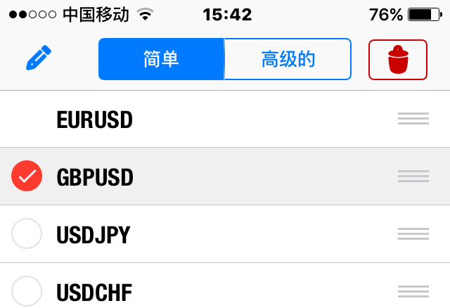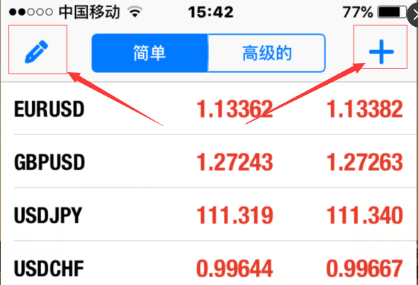 要想在手机MT4上更改已经显示的交易品种。