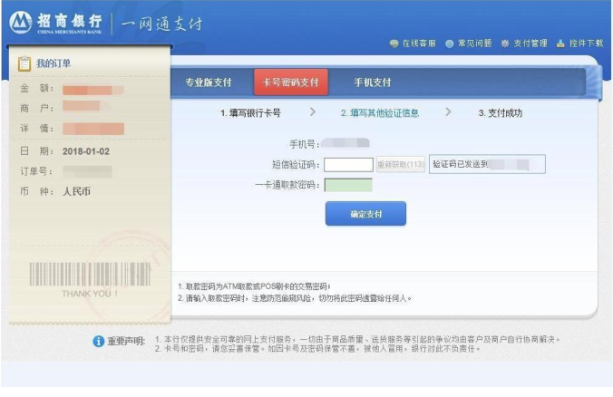 五、选择一个银行,点击提交。进入银行支付页面。以招行为例。